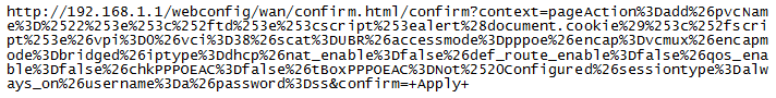 Esto permitiría robar la cookie de administrador a otro usuario. Posteriormente podría usarla para gestionar el router sin necesidad de conocer la contraseña. Para que sea efectivo, la víctima debe estar conectada como administrador en el router en el momento de visitar el enlace.