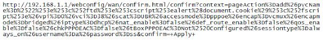 La primera de las vulnerabilidades que afectan al router XAVi X7968 se debe a un error de comprobación de los parámetros de entrada en la interfaz web del dispositivo (por ejemplo el parámetro "pvcName" que se pasa a "webconfig/wan/confirm.html/confirm" o el parámetro "host_name_txtbox" que se pasa a "webconfig/lan/lan_config.html/local_lan_config"). Esto podría ser aprovechado por un atacante remoto para realizar un ataque Cross-Site Scripting. O sea, ejecutar código HTML o javascript arbitrario en el contexto del navegador del usuario a través de una URL especialmente manipulada.